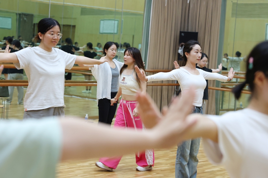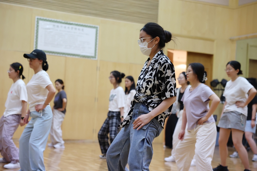 《成人芭蕾形体(零基础入门)》是日校最受欢迎的课程之一,8月4日开启报名后,耗时6秒便被一抢而空,速度仅次于运动类的《壁球》课。记者在现场看到,学员们年龄不一,有“90后”,也不乏“70后”,跟着老师陈莉颖的指点,握住墙边的把杆,认真练习芭蕾的站姿。课程所在的“望潮”排练厅是西岸大剧院风景最美的排练厅之一,透过一整面墙的落地窗,可以看到开阔的黄浦江江景与来来往往的趸船。