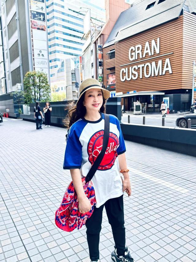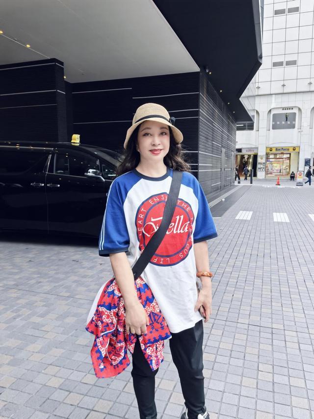 在街头,刘晓庆又切换到了另一种风格,整个人清爽减龄,像换了个人一样焕发活力。她上身选择了一件蓝白撞色棒球T恤,经典的插肩袖设计修饰了肩线,又增添了几分运动感,胸前的红色圆形印花瞬间点亮了整个造型,让基础款T恤不再单调,整体宽松的版型对身材包容度极高,能藏住腰腹赘肉,又能营造出随性慵懒的氛围。
