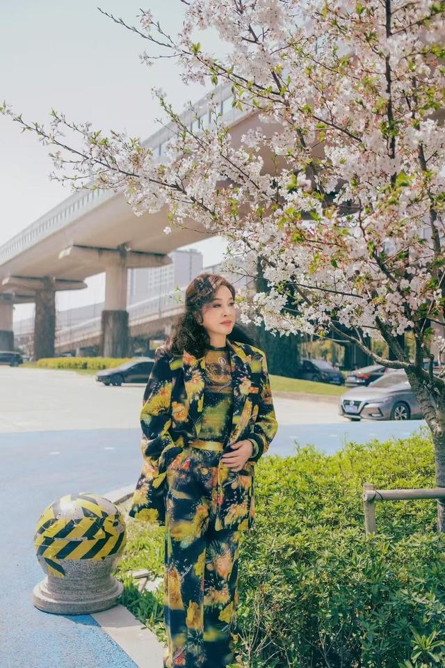 刘晓庆身上这套印花西装+阔腿裤套装,真的是把高级感与艺术感拉满。西装以深邃的黑色为底色,晕染着明黄、翠绿与暖橙的抽象花纹,色彩吸睛却不俗气,打破了纯色西装的沉闷,自带复古与艺术气息。版型是宽松廓形设计,不紧绷、不勒身,对身材包容度极高,能巧妙遮住腰腹、臀部与手臂的小赘肉,微落肩设计弱化了西装的硬朗感,让气质更柔和亲切,衣长刚好盖过臀部,修饰身形的同时更显利落。